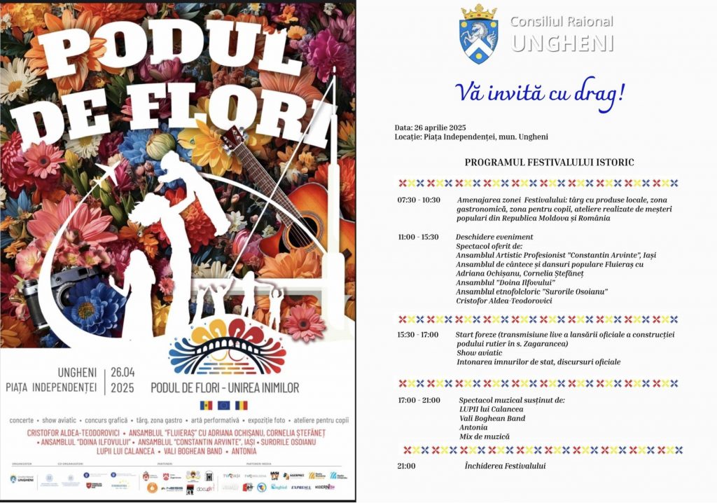 Pentru a celebra acest moment unic, la Zagarancea, raionul Ungheni, va avea loc Festivalul „Podul de Flori”, un eveniment excepțional, plin de emoție, cultură, tradiție și spectacol.